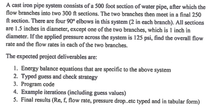 Solved A Cast Iron Pipe System Consists Of A 500 Foot Sec