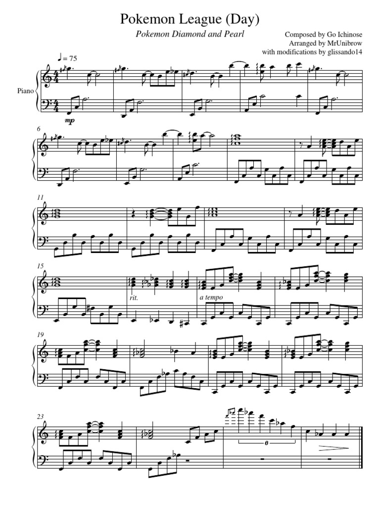 Piano Sheet Music Pokemon League Day Sinnoh Entertainment